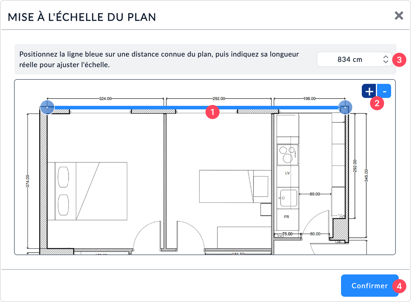 Une fois le fichier sélectionné, la fenêtre Mise à l’échelle du plan s’ouvre automatiquement.